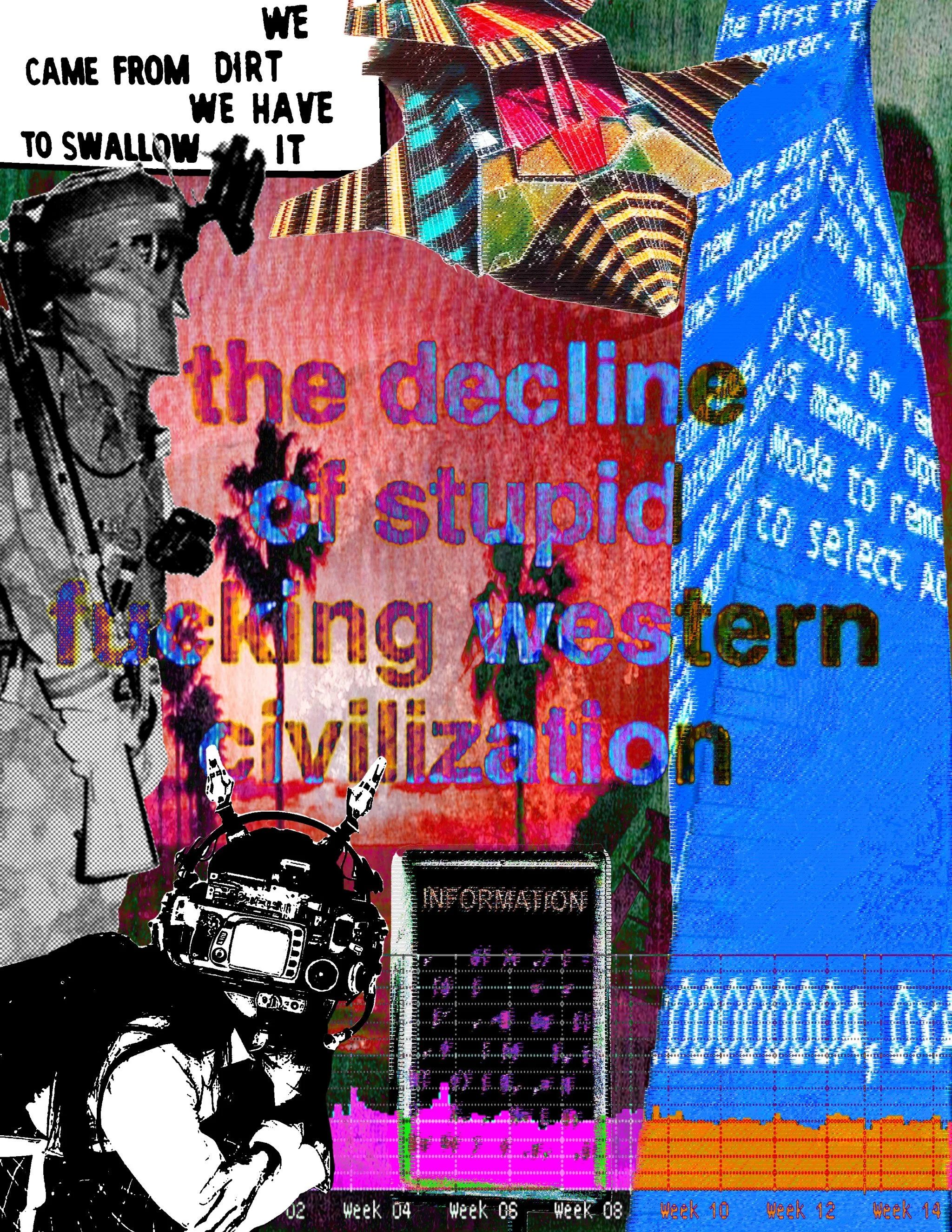 "NO-Futurism is an attempt to capture the overwhelming technicolor hell of the present day. It is angry and despairing all at once. It is jagged and harsh on the senses. It worries violently about the ultimate fate of the human race. It makes a mess of everything. It breaks down in the corner of the room, hyperventilating. It is chaotic, claustrophobic, brutal, scrappy, junkish, vibrant, burnt-out, bleak, cheap, electronic, eclectic, esoteric, and, above all else, utterly doomed.”