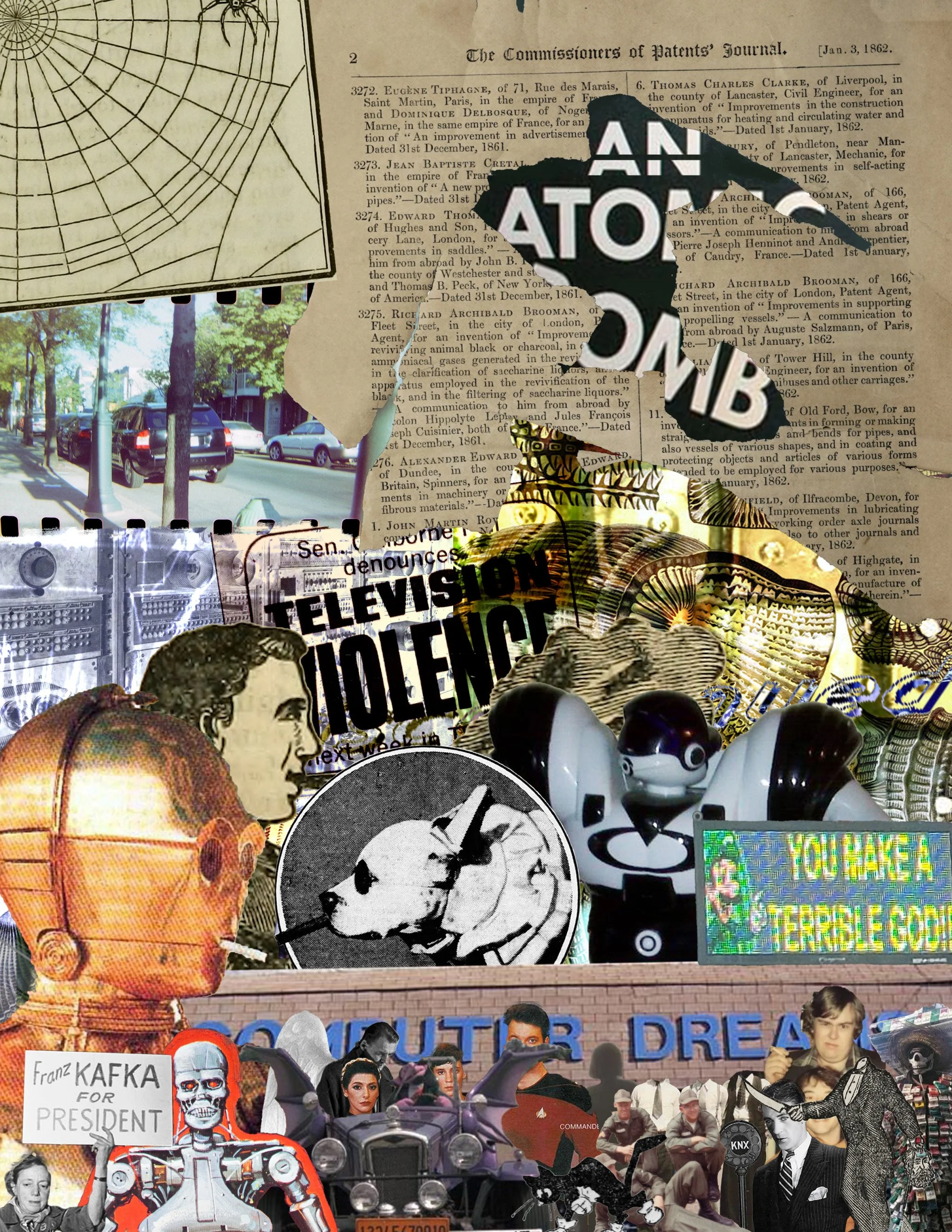 Originally published by ArtpunkINTL in November, 2023, this collage series documents my fascination with the self-styled genre of NO-Futurism, a cynical rebuttal to Futurism in the way No-Wave was a response to New Wave. The original blurb reads as follows: